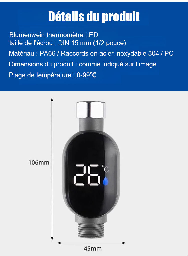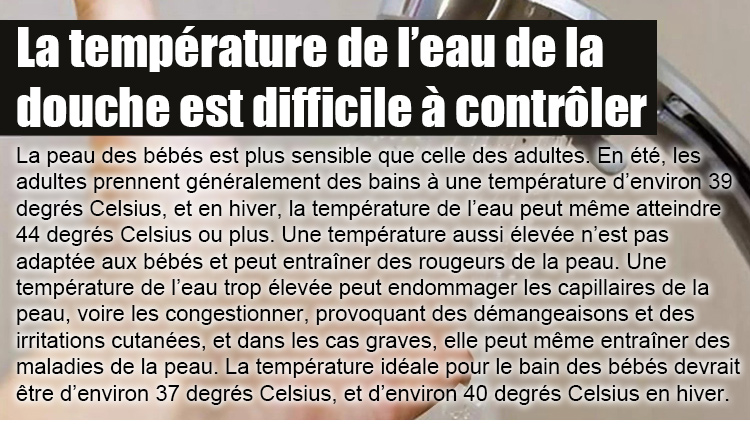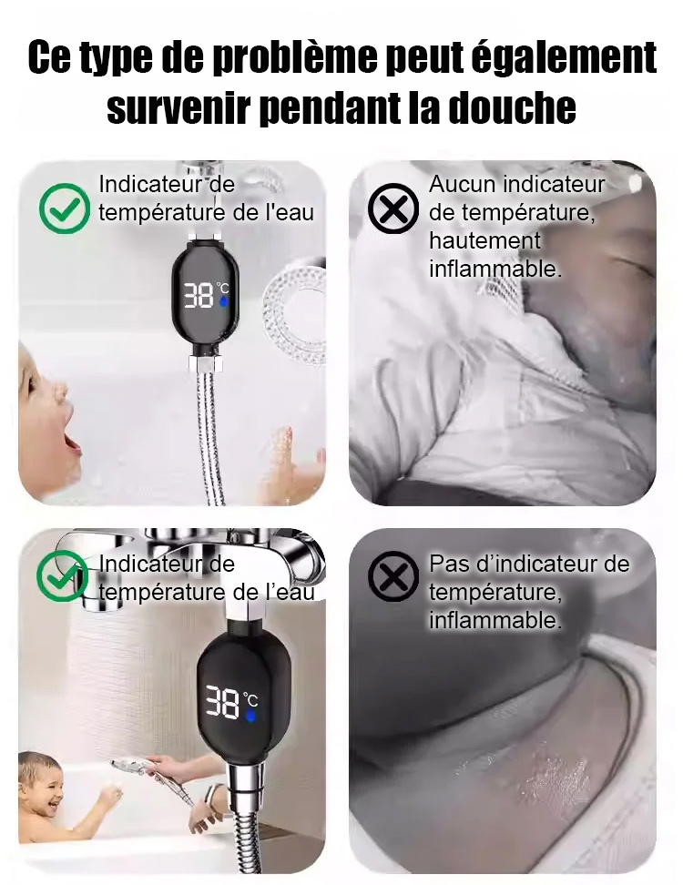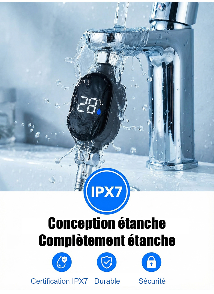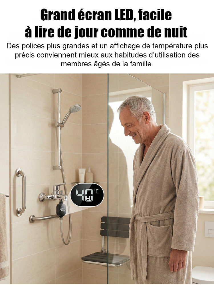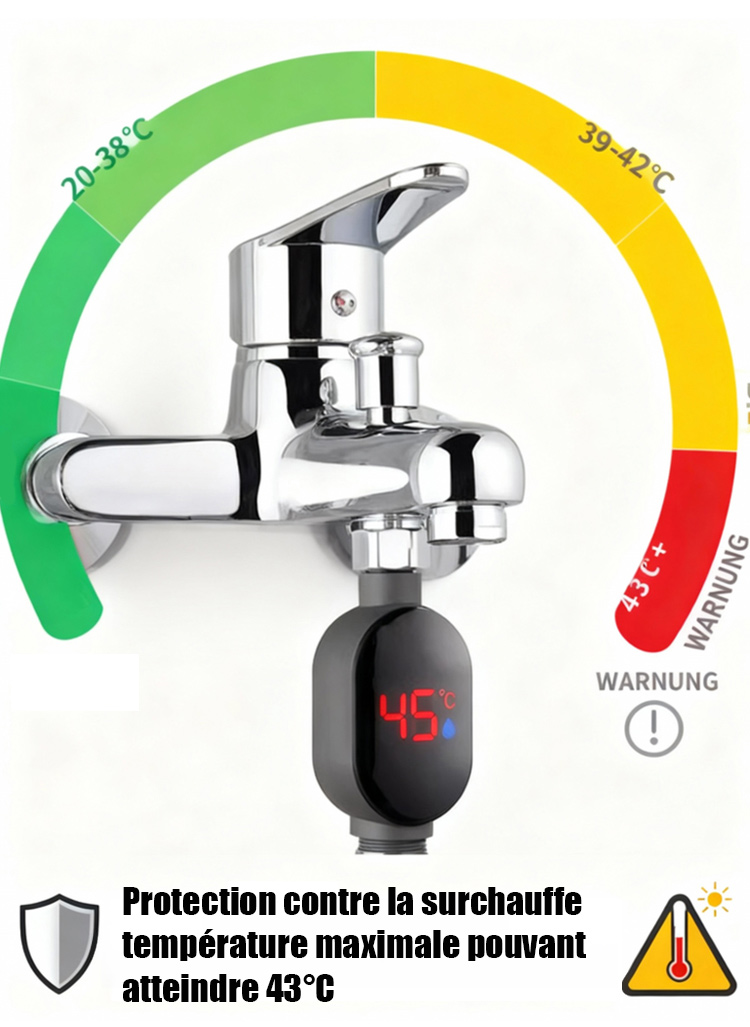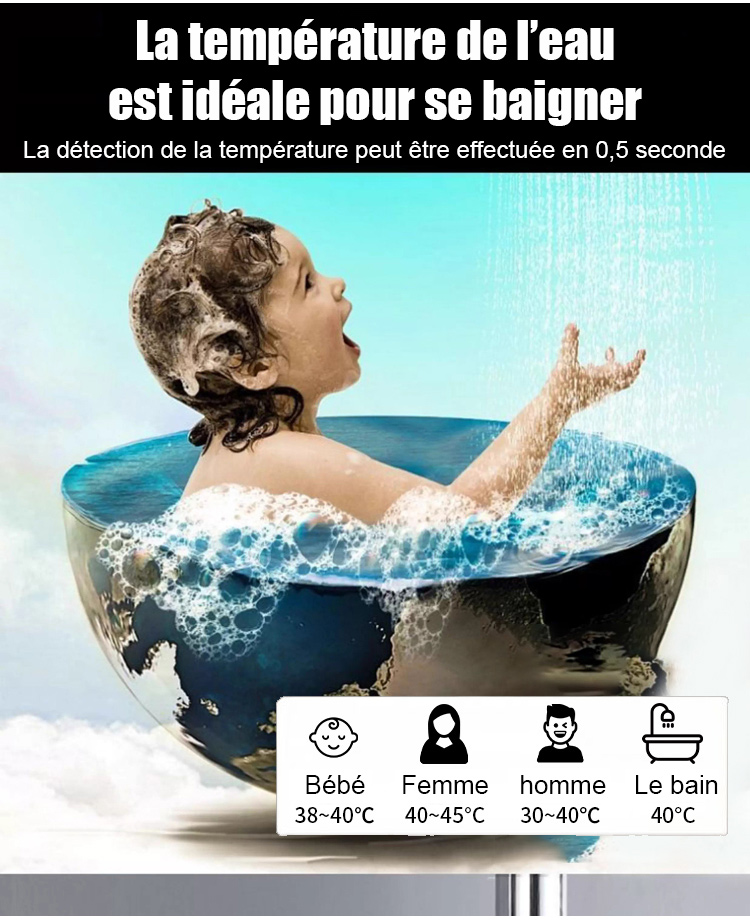 Grâce à son affichage numérique de la température de l'eau, vous pouvez la contrôler avec précision et éviter ainsi les brûlures et les bains froids.