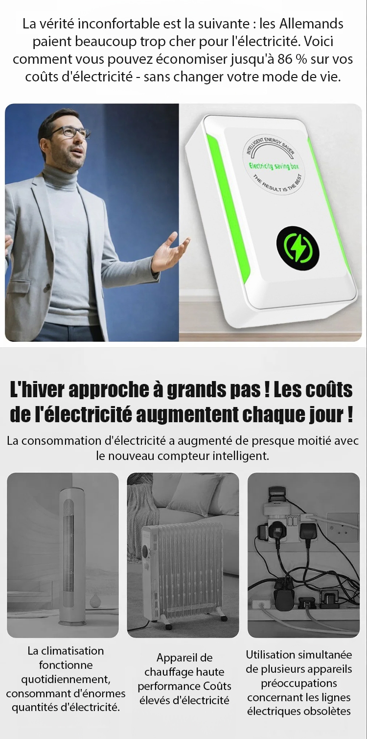 ✅ Économise jusqu'à 86 % d'électricité⚡ Réduit les pertes d'énergie🔌 Stabilise la tension électrique🛡️ Protège les appareils électriques🚀 Facile à utiliser, juste à brancher🏠🏢 Convient à maison, bureau, magasin